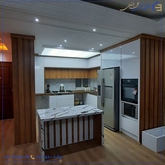 بخش سوم: ترکیب سفید و چوب در کابینت
