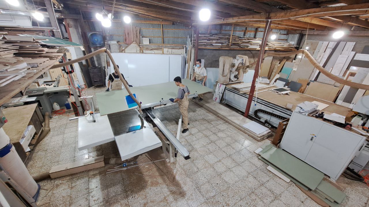در کارگاه ما، نجارهای ماهر با بهرهگیری از ابزارهای پیشرفته و چوبهای درجهیک، در حال تولید انواع مصنوعات چوبی هستند؛ از کابینت، میز و صندلی گرفته تا دربهای چوبی و دکورهای سفارشی.
