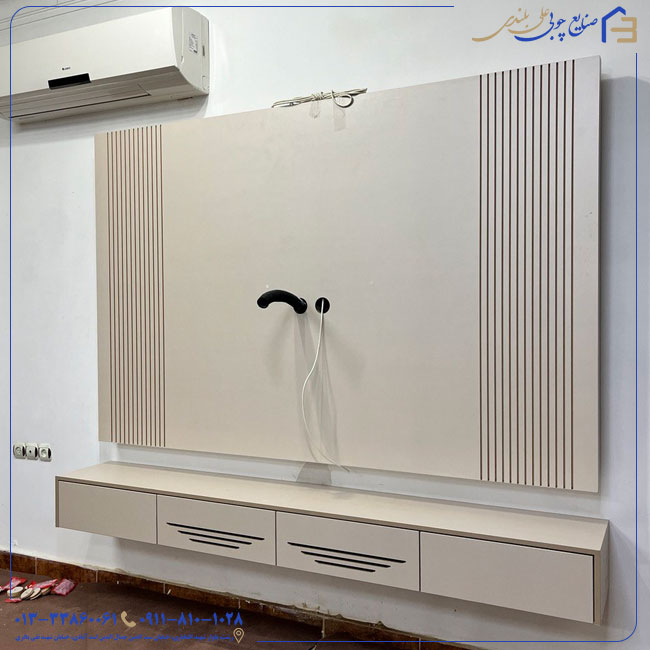 ساخت سفارشی (Custom): این روش شامل طراحی و ساخت تی وی وال بر اساس نیازهای خاص شماست. در این حالت، تمامی ابعاد، مواد و جزئیات طبق درخواست شما ساخته میشود.